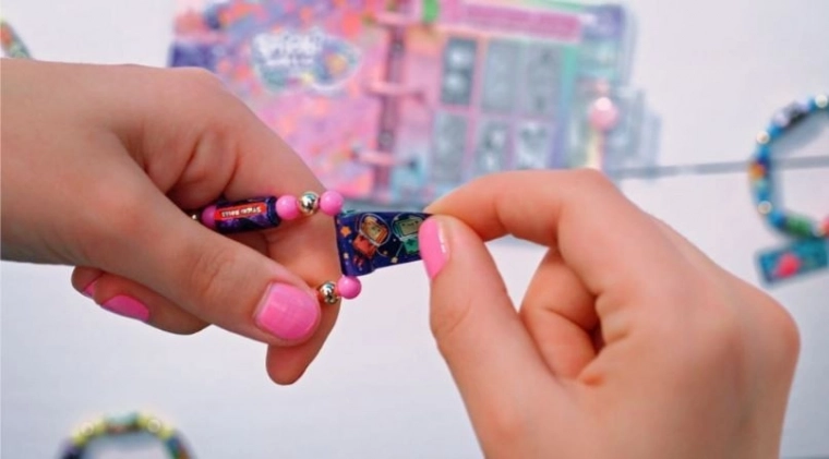 - Materijal za 6 narukvica i 2 ogrlice (elastična gumica, perlice, privjesci, kopče, mini rolice s naljepnicama)