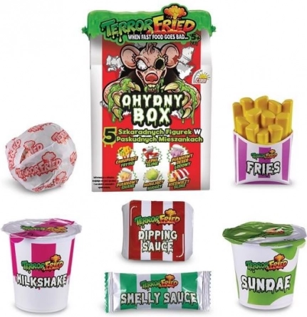 Set TERROR FRIED – Odvratan box je kao horor iz brzog obroka: unutra ćete naći gadno zabavne kombinacije koje šište, lijepe se, pucaju i mame na stiskanje. Idealan za djecu koja vole ludi humor, skupljanje figurica i taktilne doživljaje.