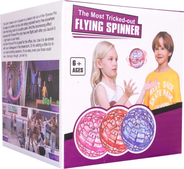 Tijekom leta kugla se osvjetljava šarenim LED svjetlima, što pruža efektan doživljaj danju i u sumrak. Smjer leta možete prilagoditi načinu bacanja – pošaljite je kao bumerang natrag sebi ili je pustite da leti ravno. Napajanje iz ugrađene baterije 3,7 V puni se putem USB-a.