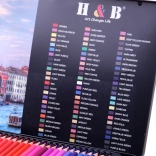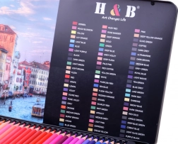 Bojice su posložene u metalnom kućištu s umjetničkim motivom i nazivima boja na engleskom jeziku, idealno za prenosivost i skladištenje.