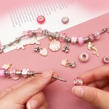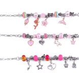 Set sadrži sve potrebno za izradu prekrasnih narukvica i ogrlica: razne perle, privjesci i konci.