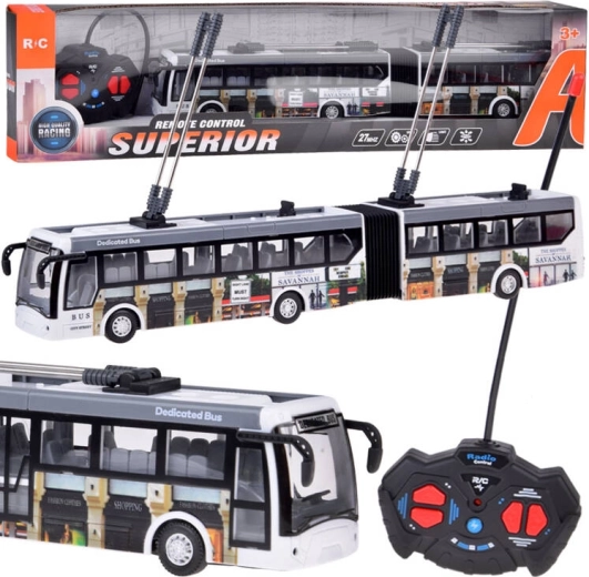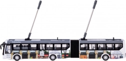 Realističan gradski zglobni trolejbus duljine 36 cm razveselit će male vozače i kolekcionare. Nudi daljinsko upravljanje s kretanjem naprijed/natrag i lijevo/desno, svijetli LED svjetlima, a zahvaljujući USB punjenju s priloženim akumulatorom spreman je za vožnju. Čvrsta plastična izrada i detaljan tisak upotpunjuju atraktivan izgled.