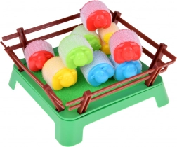 Obiteljska igra spretnosti Skakajuće ovčice donosi brzu akciju i puno smijeha: pomoću ispaljivača ispaljujte šarene ovčice u tor. Jednostavna pravila, sjajna zabava za djecu i odrasle i razvoj fine motorike, koordinacije i koncentracije. Set sadrži 16 ovčica, 4 ispaljivača i tor.