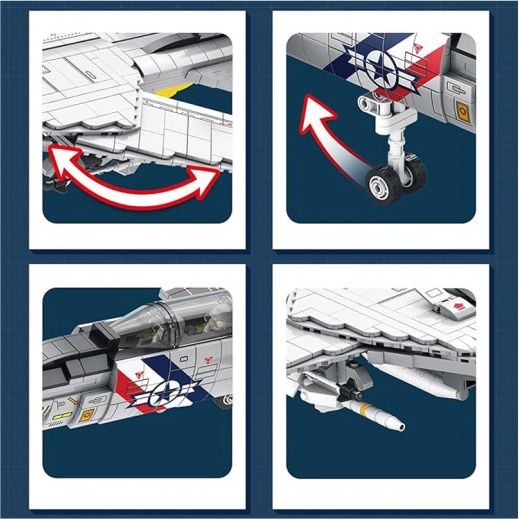 Ikonični američki lovački zrakoplov F-14 Tomcat oživljava u detaljnom tehničkom setu koji će oduševiti iskusne graditelje i kolekcionare. Promjenjiva geometrija krila, vjerni oblici repnih površina i funkcionalni detalji daju gotovom modelu impresivno realističan izgled.