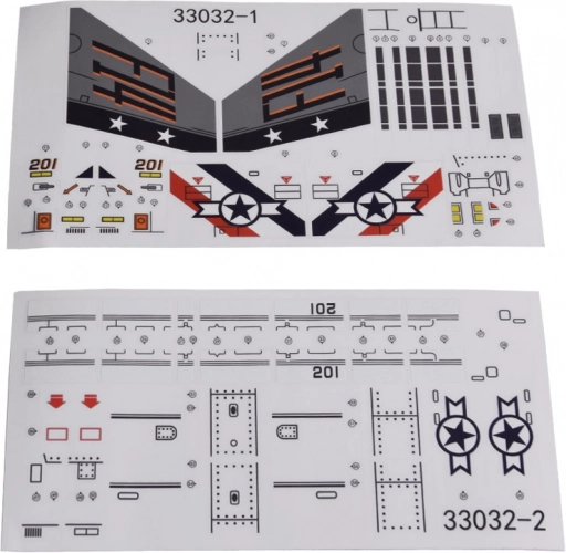 Listići s naljepnicama i odvojive rakete upotpunjuju konačan izgled modela. Dodajte oznake i insignije koje daju letjelici realističan, kolekcionarski karakter.