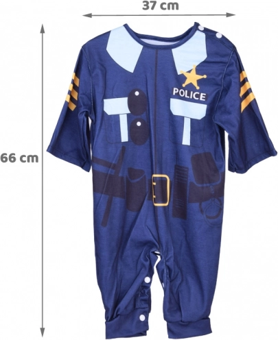Ovaj dječji policijski kostim pretvara svakog malog junaka u hrabrog čuvara reda. Plavi kombinezon s tiskom značke, džepova i natpisom POLICE izgleda uvjerljivo i savršeno pristaje za karneval, rođendansku proslavu i svakodnevnu maskirnu igru.