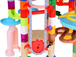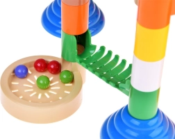 Stvarajte raznolike konstrukcije od cijevi, zavoja, spirala i nosača te promatrajte kako kuglice jure niz rampe. Zahvaljujući električnom dizalu kuglice se automatski vraćaju na start i zabava teče bez prestanka. Čvrsti plastični dijelovi u živim bojama dizajnirani su za lako spajanje i stabilnu konstrukciju.