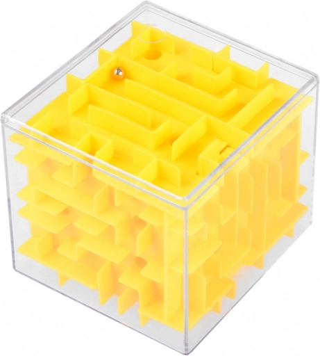 Okretna 3D labirintska kocka odličan je izbor protiv dosade za djecu i odrasle. Unutar prozirne i izdržljive plastike krije se mnoštvo krivudavih hodnika kroz koje spretnim pokretima ruku vodite metalnu kuglicu od starta do cilja. Igra nema jedan završetak – kuglica koja uđe kroz jedan otvor izađe kroz drugi, pa zabava nikad ne prestaje.
