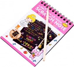 Ovaj dugin set za struganje idealan je za male umjetnike. Dovoljno je crtaćim alatom sastrugati crni sloj i pojavit će se jarke boje. Zahvaljujući praktičnom A6 formatu, bilježnica stane u ruksak ili džep, pa je zabava uvijek pri ruci – na putu, u školi i kod kuće.