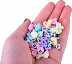- Širok izbor oblika i boja – slovne perlice, srca, cvjetići, mašnice i višebojne kuglice.
