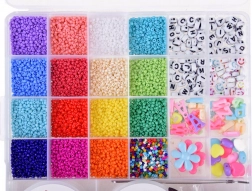 Ovaj univerzalni DIY set sadrži široku paletu šarenih perlica i dodataka u prozirnom organizatoru s pregradama. Djeca mogu osmisliti i sastavljati originalan nakit za sebe i svoje najbliže – od narukvica sa slovima do razigranih ogrlica sa srcima i cvjetićima. Organizator pomaže zadržati preglednost pa je rad čist i zabavan.