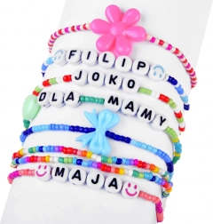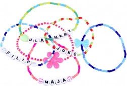Izrađujte narukvice i ogrlice s imenima, inicijalima ili porukama zahvaljujući slovnim perlicama i šarenim dodacima.