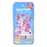 Džepna vodena igra s motivom jednoroga u obliku telefona donosi zabavu za djecu i odrasle. Pritiskom na tipke pokrećete vodu i nastojite navući šarene prstenove na iglice. Igra potiče koncentraciju, strpljenje i finu motoriku. Zahvaljujući kompaktnim dimenzijama idealna je za putovanja, školu i pauze. Boja se šalje nasumično.