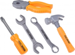Set sadrži čekić, ključeve, odvijač, vijke, matice i građevne dijelove – idealno za vježbanje fine motorike i kreativno građenje.