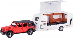 Set terenskog vozila s karavanom donosi djeci realističnu igru putovanja i kampiranja. Metalno-plastična izvedba osigurava izdržljivost i dugi vijek trajanja, dok svjetla i zvukovi pojačavaju doživljaj vožnje. Zahvaljujući pull-back pogonu dovoljno je autić povući unatrag i pustiti – sam kreće naprijed.