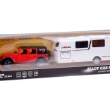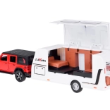 Set terenskog vozila s karavanom donosi djeci realističnu igru putovanja i kampiranja. Metalno-plastična izvedba osigurava izdržljivost i dugi vijek trajanja, dok svjetla i zvukovi pojačavaju doživljaj vožnje. Zahvaljujući pull-back pogonu dovoljno je autić povući unatrag i pustiti – sam kreće naprijed.