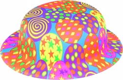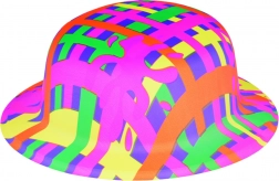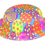 Ovaj veseli šešir s raznobojnim uzorcima savršen je izbor za svaku zabavu. Izrađen je od elastične plastike, dobro pristaje i lako se održava. Zahvaljujući živim bojama i motivima privlači pozornost i vašem događaju daje razigran stil.