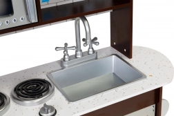 Kao u pravoj kuhinji, djeca imaju mogućnost peći, kuhati i grijati hranu u mikrovalnoj i zatim sve posuđe oprati u prostranom sudoperu i pospremiti na svoje mjesto.