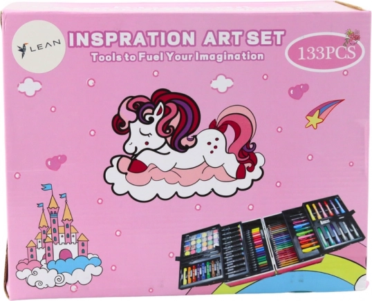 Likovna set u proširivom koferčiću.Likovna set u rasklopivom koferčiću ukrašenom prekrasnim motivom jednoroga. Idealan je dar za svakog malog umjetnika koji će ga prenijeti u svijet mašte i stvaralaštva!