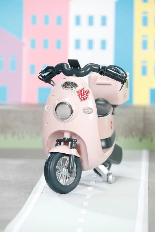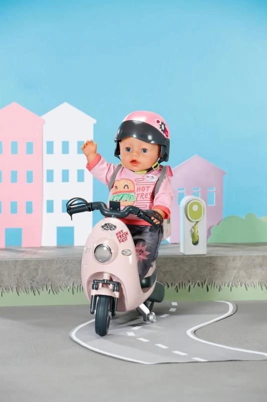 Ovaj ružičasti električni skuter savršen je dodatak za kreativnu igru s lutkom BABY born. Djeca mogu lako upravljati smjerom vožnje pomoću daljinskog upravljača, dok realistični elementi poput svjetala, stalka i funkcionalnih detalja potiču maštu i razvoj motorike.