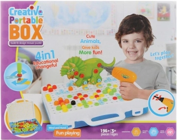 Ova vijčana slagalica razvija dječju maštu i spretnost. Zahvaljujući lako upravljivoj baterijskoj bušilici i pregledno posloženim dijelovima u kovčežiću koji služi i kao baza, sastavljanje je pregledno i zabavno.