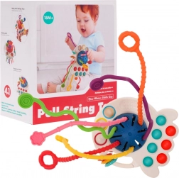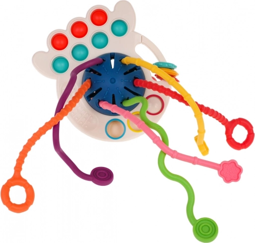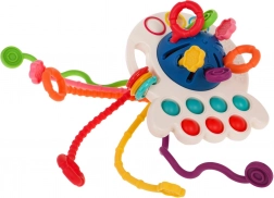 Otkrijte osjetilnu igračku 4u1 u obliku hobotnice za djecu od 18 mjeseci. Kombinira gumene vezice za povlačenje i grickanje, popularne POP IT mjehuriće, klizne elemente i igru s navlačenjem kuglica. Izrađena je od sigurnih materijala bez oštrih rubova, ima žive boje i može se pričvrstiti na krevetić, kolica ili autosjedalicu.