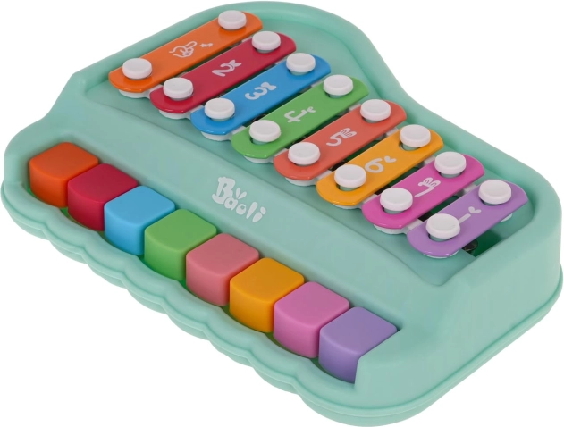 Ova simpatična glazbena igračka kombinira pianino i ksilofon u jedan kompaktan set koji razvija sluh, ritam i finu motoriku. Zahvaljujući živim bojama prirodno privlači djecu i potiče kreativnu igru te prve glazbene pokušaje.