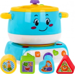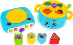 Interaktivni štednjak je idealan za male kuhare i nudi kombinaciju svjetlosnih i zvučnih efekata koji simuliraju kuhanje. Igračka imitira zvukove kuhanja vode, prženja i paljenja plina, sve popraćeno veselim melodijama i treperećim svjetlima. Igračka pomaže djeci razvijati manuelne vještine i sposobnosti pravilnog smještanja oblika u odgovarajuće otvore.