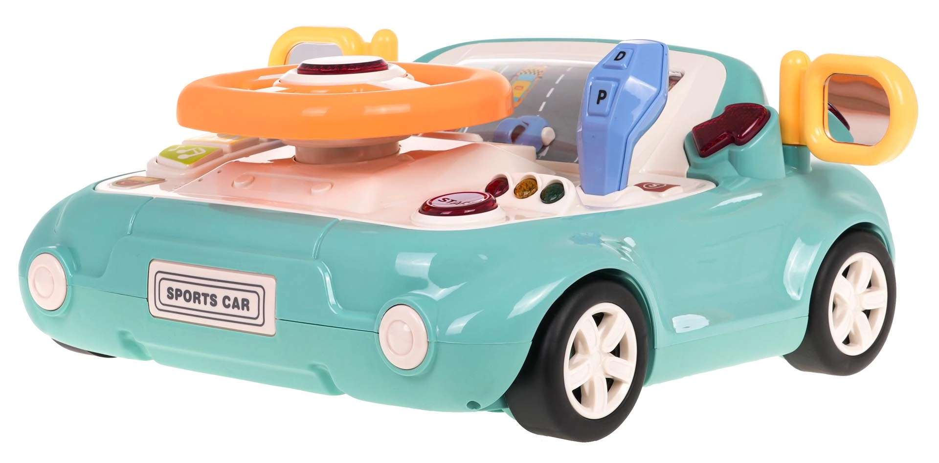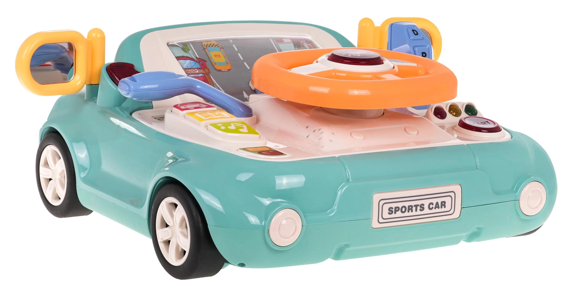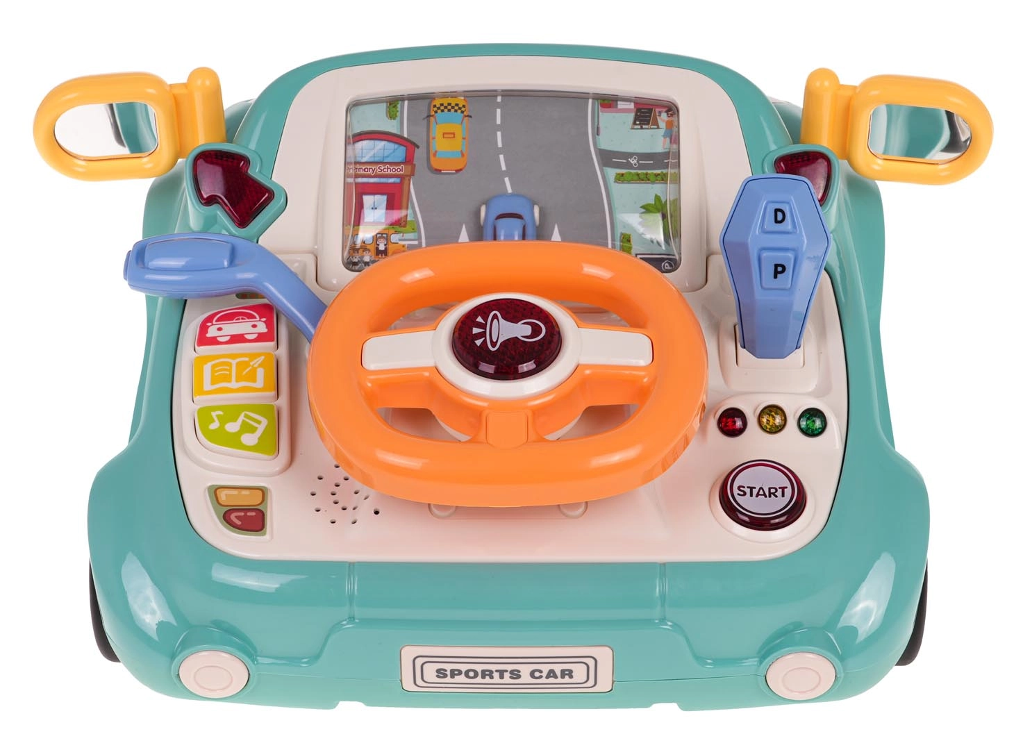 Okretni volan s pozadinski osvijetljenom trubom, ručica mjenjača i funkcionalni žmigavci daju djeci dojam prave vožnje i potiču ih na otkrivanje prometnih pravila.