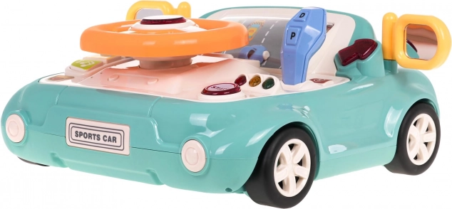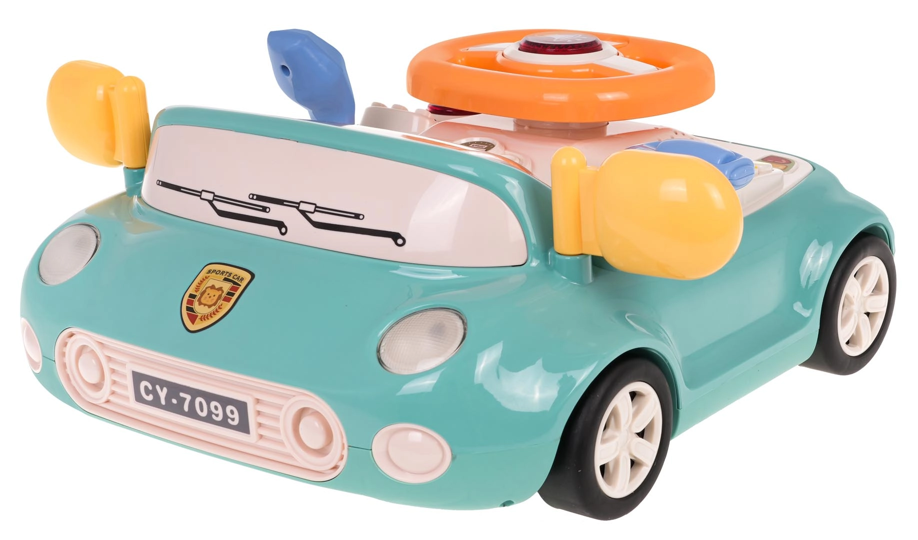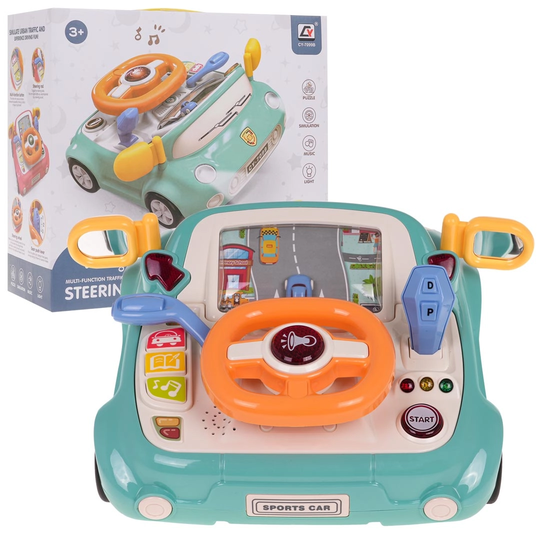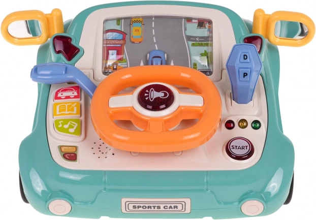 Okretni volan s pozadinski osvijetljenom trubom, ručica mjenjača i funkcionalni žmigavci daju djeci dojam prave vožnje i potiču ih na otkrivanje prometnih pravila.