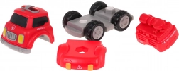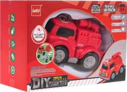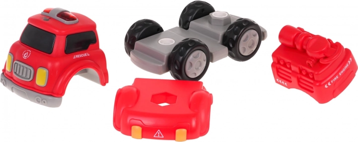 Interaktivni vatrogasni automobil s magnetima za djecu od 3 godine. Vozilo je izrađeno od najkvalitetnije plastike i ima zvučne i svjetlosne efekte. Pritiskom na gornji dio vozila čut ćete vesele pjesmice, sirene vatrogasaca ili dječji smijeh. Zvučne efekte prate šarena svjetla na krovu vozila. Vozilo se može rastaviti bez upotrebe alata. Pojedini elementi imaju magnete pa se lako i čvrsto spajaju. Igračka se napaja s 3 x AG13 baterije (uključene).