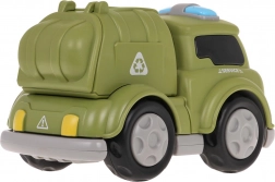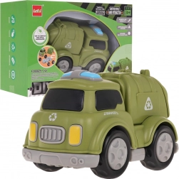 Interaktivni kamion za smeće donosi djeci radost i nova saznanja. Izrađen je od kvalitetne plastike i opremljen zvučnim efektima, poput zvukova vožnje, veselih melodija i dječjeg smijeha. Svjetlosni efekti uključuju bljeskajuća šarena svjetla na krovu vozila.