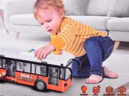 Ovaj model autobusa izrađen je od kvalitetne plastike s naglaskom na detalje. Opremljen je mehaničkim pogonom; dovoljno ga je pogurati ili povući unatrag, otpustiti na ravnoj površini i autobus će se sam pokrenuti. Gumene gume osiguravaju bolje prianjanje na podlogu.