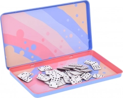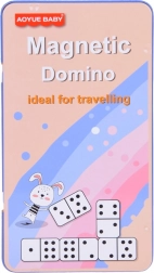 Magnetički mini domino idealan je za brzu i zabavnu igru tijekom putovanja. Set sadrži 28 magnetnih pločica, a dimenzije svake su 2,5 x 1,5 cm.
