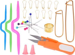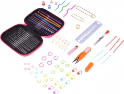 Set sadrži sve dodatke potrebne za kukičanje - metar, sigurne škare, igle, pribadače, centimetre, naprstke i mnogo više, da možete stvarati s profesionalnim dodirom.
