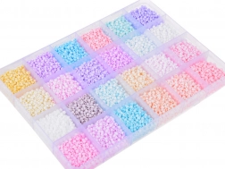 Uključuje 24 različite pastelne boje perlica: ružičaste, ljubičaste, plave, bež, zelene, bijele i žute. Smještene su u prozirnom, izduženom pakiranju koje je praktično podijeljeno u pretince. Time se sprječava miješanje perlica i olakšava njihova organizacija.