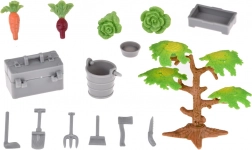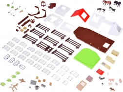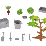 Set uključuje plastične figurice životinja poput pasa, konja, prasadi, ovaca i krava, koje su izrađene s naglaskom na detalje. Ne nedostaju ni likovi farmera i domaćice, koji obogaćuju igru svakodnevnim farmerskim obavezama. Dio seta je također traktor s prikolicom, vrtni alat i dekorativne naljepnice za vlastitu personalizaciju farme.