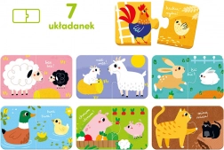 Dobrodošli u svijet životinja sa farme! Puzzle za prepoznavanje životinja sa farme djeci nude interaktivan način učenja o malim i velikim životinjama uz pomoć sedam šarenih slagalica.