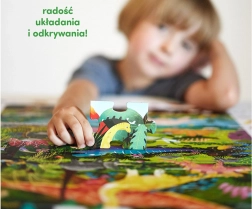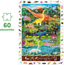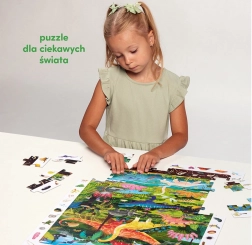 Istraživačke puzzle Dinosauri sadrže 60 dijelova koji stvaraju očaravajuću sliku s dinosaurusima. Ilustracija je okružena okvirom punim detalja koje djeca vole otkrivati i uspoređivati sa slikom. U pakiranju se nalazi i edukativni plakat na kojem djeca mogu pronaći zanimljivosti iz svijeta dinosaura.