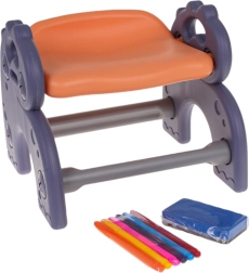 - set s pločom, podlogom i stolicom, .- spužvica s gumom, .- 6 obojenih flomastera, .- ukrasne naljepnice, .- upute. . |