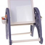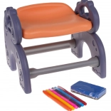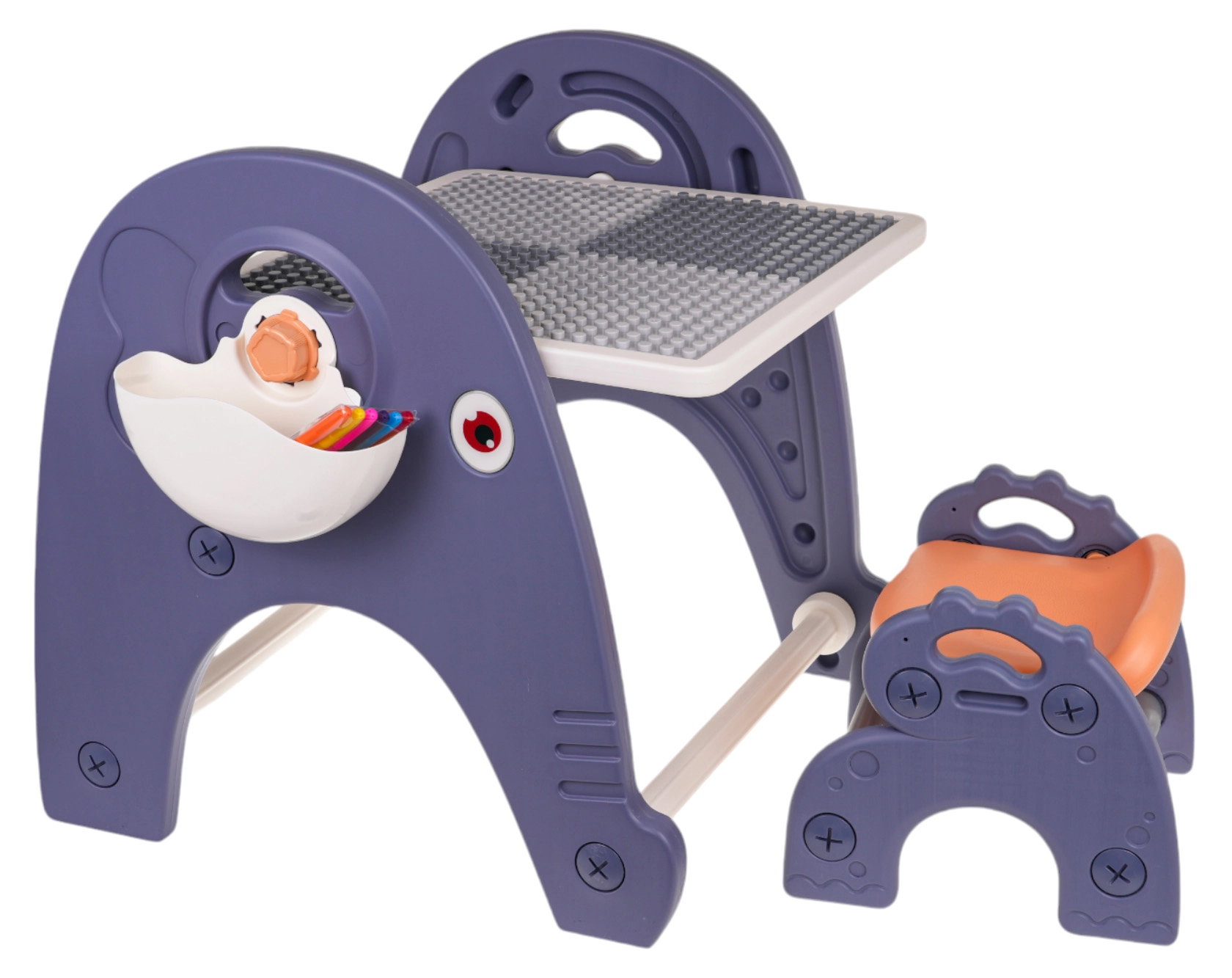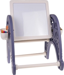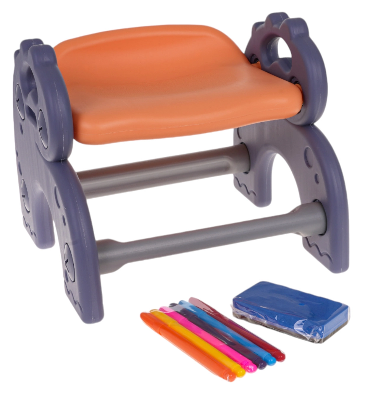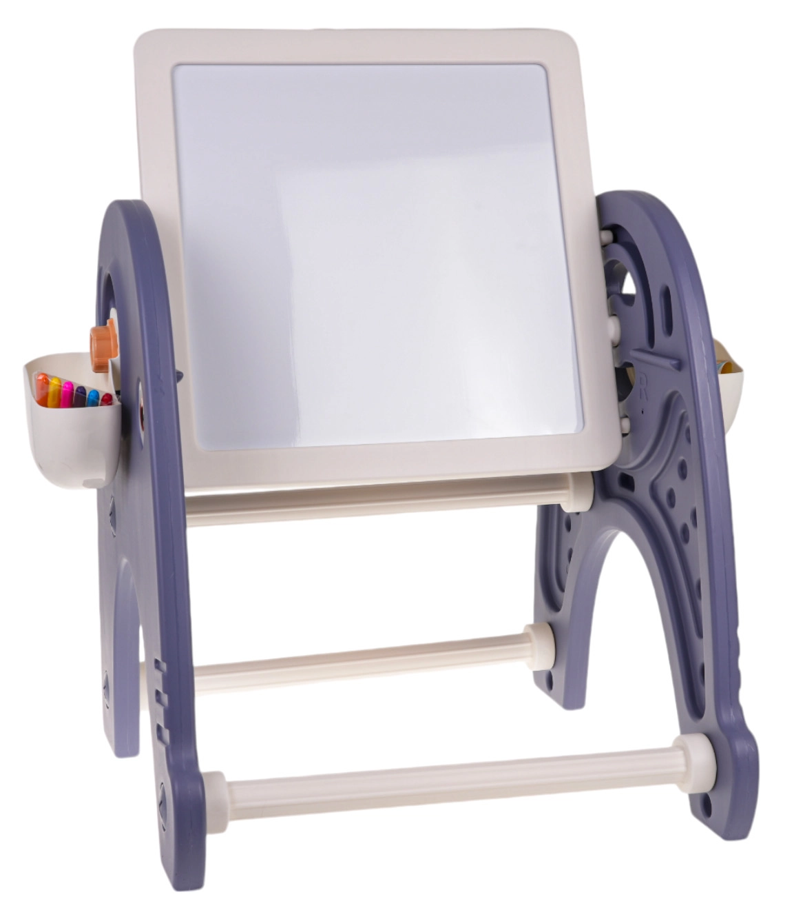 Set 4 u 1: ploča, stol, podloga za slaganje kockica i stolica za djecu od 3 godine. Set je izrađen od najkvalitetnije plastike, nema oštrih rubova i stabilan je. Na plastičnim nogama nalazi se ploča koju je moguće naginjati pod bilo kojim kutom i okretati. S jedne strane je ploča za crtanje, a s druge podloga za slaganje kocaka. Ploču i podlogu moguće je koristiti u okomitom ili vodoravnom položaju. U vodoravnom položaju set se može koristiti kao stolić za crtanje, učenje ili jelo, odnosno kao podloga za kocke. U kompletu su spužvica i 6 flomastera. Sa strane seta nalaze se i dvije košarice za slikarski pribor. Set razvija dječju maštu i kognitivne sposobnosti. .. Funkcije seta: . - namijenjeno djeci od 3 godine, .- izrađeno od sigurnih materijala, bez oštrih rubova, .- mnogo mogućnosti za igru: .* slikarski stolić, .* stol za učenje ili igru, .* stalak/podloga za slaganje kocaka, .* ploča za crtanje, .- stabilna stolica, .- razvija dječju maštu i kognitivne sposobnosti. . |