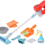 Ovaj dječji set za čišćenje izrađen je od izdržljive plastike u veselih bojama i odlično je prikladan za igru kućanstva ili hotela. Usisavač na 3× AA baterije (nisu uključene) po pritisku na gumb proizvodi realističan zvuk, a bijele kuglice u prozirnom spremniku se pokreću – djeca tako imaju dojam pravog usisavanja.