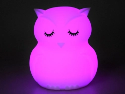 Ova dječja noćna lampica sova od nježnog i sigurnog silikona blago će osvijetliti tamu i otjerati noćne strašila. Nudi 9 boja uključujući bijelu, crvenu, žutu, ružičastu, zelenu, plavu, narančastu, tamnoplavu i ljubičastu. Boje mijenjate dodirom izravno na lampici ili praktično daljinskim upravljačem.