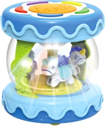 Glazbeni bubanj igračka Huanger 3u1 nudi spoj bubnja, glazbene kutije i projektora, što pruža zabavu i poticaj za razvoj osjetila i učenje djece.