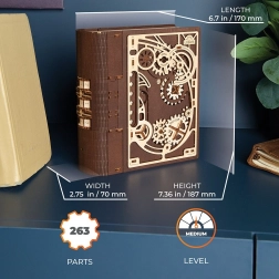 Otkrijte elegantan način kako sakriti svoje sitne dragocjenosti: drvena mehanička Knjiga tajni od UGEARS nakon sastavljanja postaje funkcionalna kutija s trocifrenim kodom i dojmljivim zupčanicima. Model od održivo dobivenog drva nudi srednju zahtjevnost, bez ljepila i do 12 sati zabavne gradnje – idealno kao originalan poklon i dizajnerska dekoracija police.