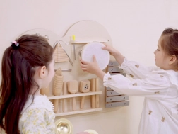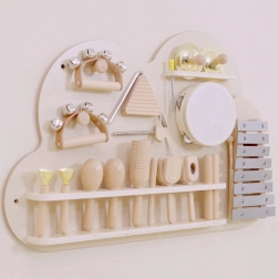 Ovaj drveni glazbeni panel omogućuje djeci lak pristup 12 različitim udaraljkama, kao što su ksilofon, tamburin i triangl. Zahvaljujući tome, djeca aktivno razvijaju svoje glazbeno obrazovanje i potiču cjelovit razvoj.