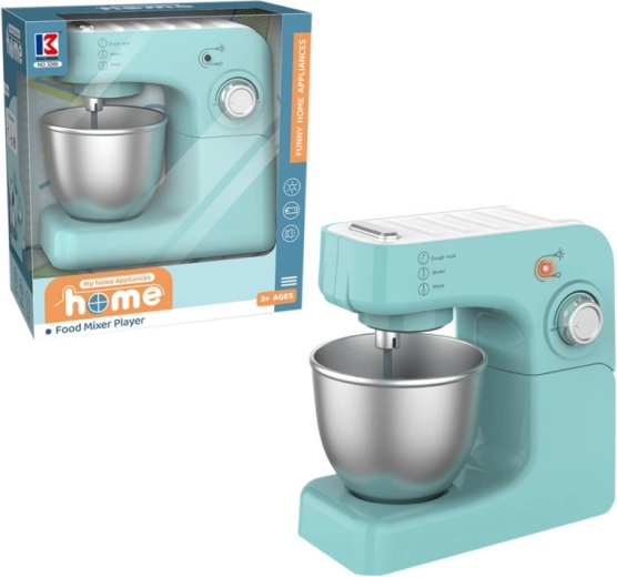 - Mali kuhar može samostalno upravljati procesom miješanja pritiskom na srebrni gumb na gornjoj strani igračke.