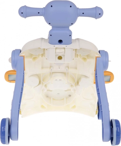 Odvojivi interaktivni autić donosi svjetlosne i zvučne efekte (melodije, zvuk otvaranja i pokretanja motora, vožnja, dječji smijeh, zvonca) koji potiču istraživanje. Zahvaljujući 2-stupanjski podesivoj ručki i gumenim kotačima kretanje je glatko i sigurno. Pretvaranje u stolić brzo je i jednostavno – idealno za igru u sjedećem položaju.