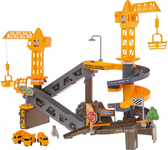 Složite svoje užurbano gradilište s dvjema funkcionalnim dizalicama, zavojima i dizalom za autiće. Pokretne tračnice podižu vozila prema gore, a s rampi se spuštaju natrag dolje – idealna kombinacija akcije i maštovite igre. Dijelovi su izrađeni od izdržljive plastike i zahvaljujući izraženim bojama privlače pažnju na prvi pogled.