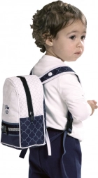 Kolica se ističu elegantnim španjolskim dizajnom s prošivenim detaljima i imitacijom drveta na rukohvatima. Tu su i sigurnosni trodijelni pojas, mekano podstavljenje i prostrana košara za potrepštine. U kompletu je i stilski ruksak koji se može pričvrstiti na kolica ili nositi na leđima.